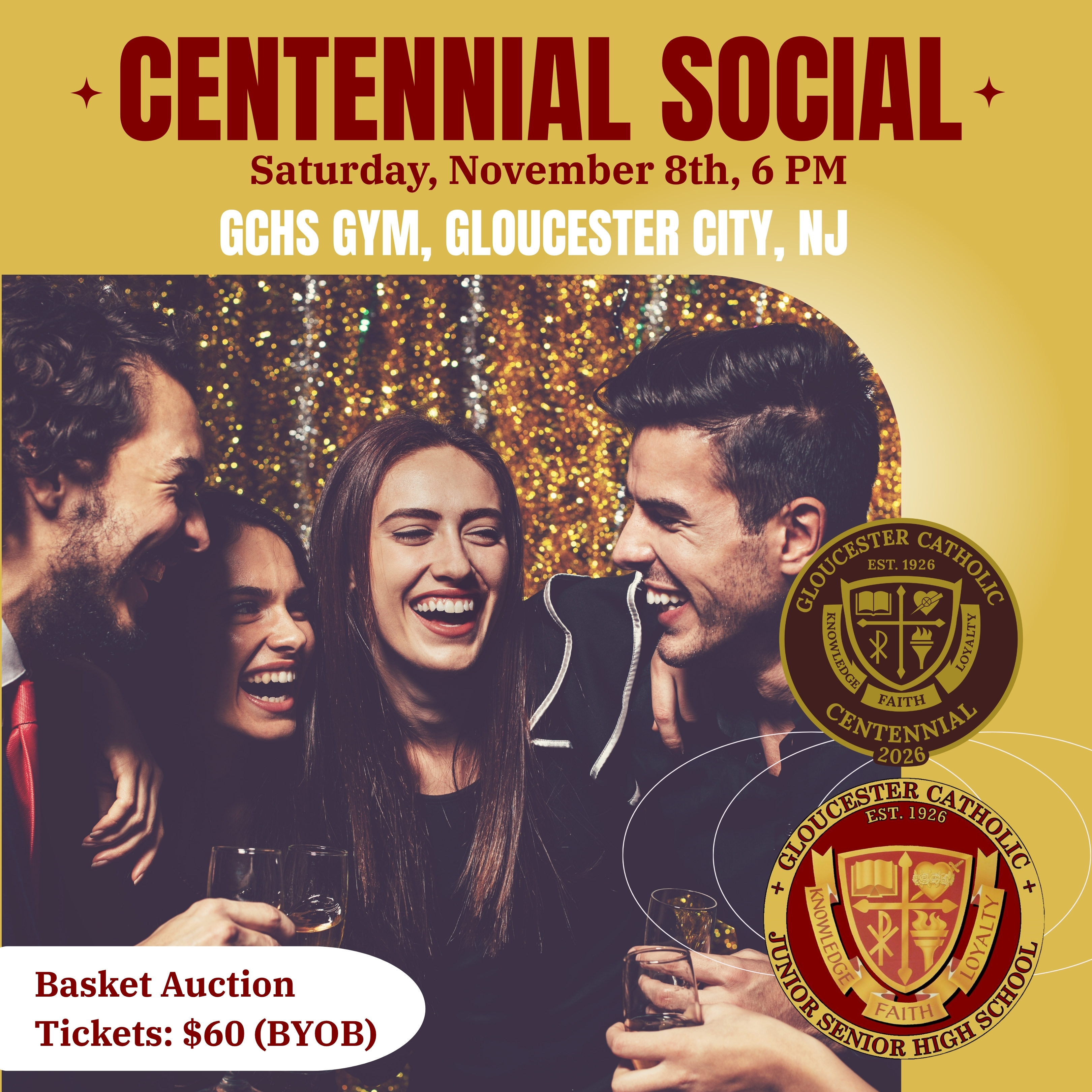 Centennial Social, Saturday, November 8th, 6 PM, GCHS Gym, Gloucester City, NJ. Basket Auction. Tickets: $60 (BYOB).