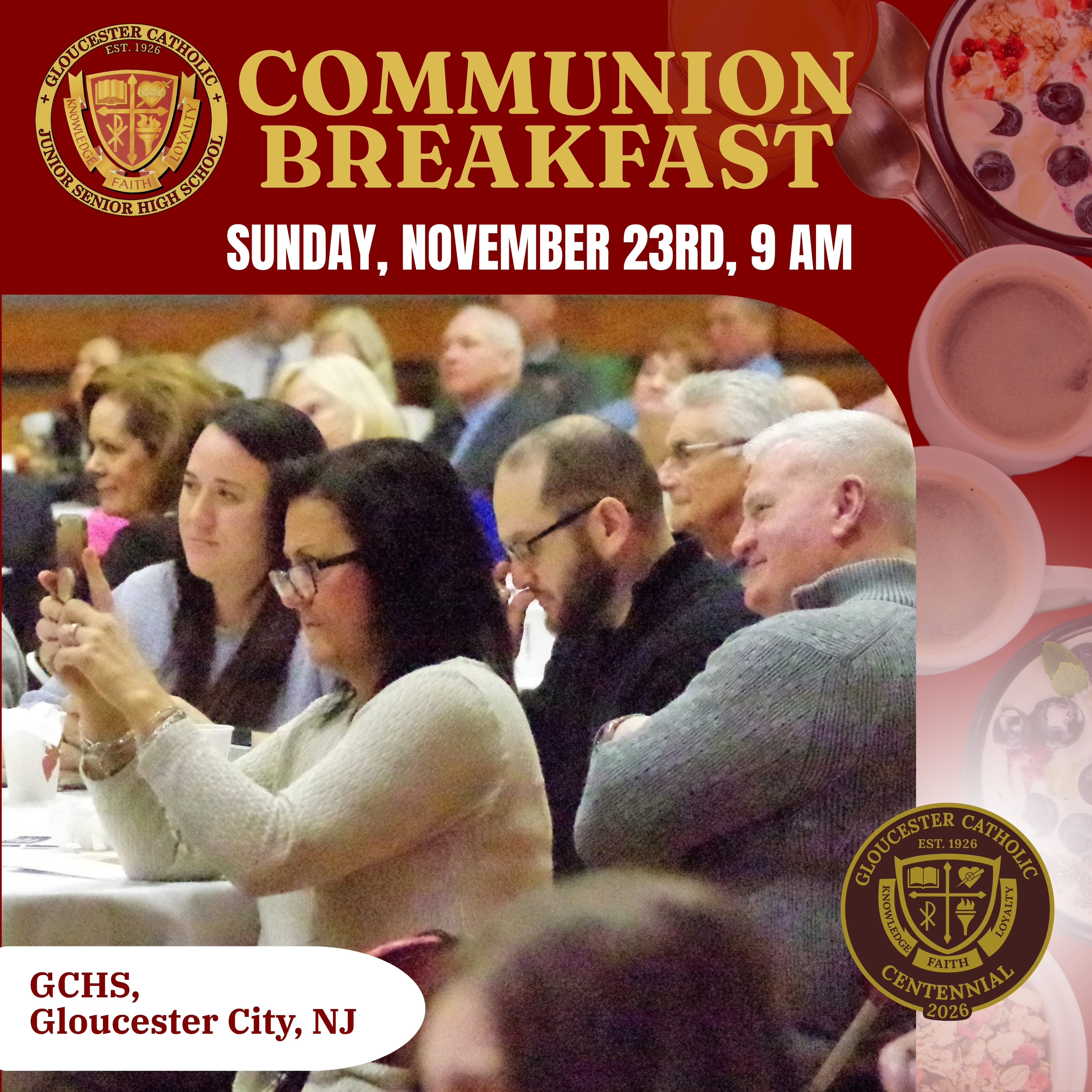Communion Breakfast, Sunday, November 23rd, Mass – 9:30 AM, St. Mary’s Church. Breakfast follows at GCHS, Gloucester City, NJ. Breakfast Tickets: $20. Gostrum@GCHSRams.org.
