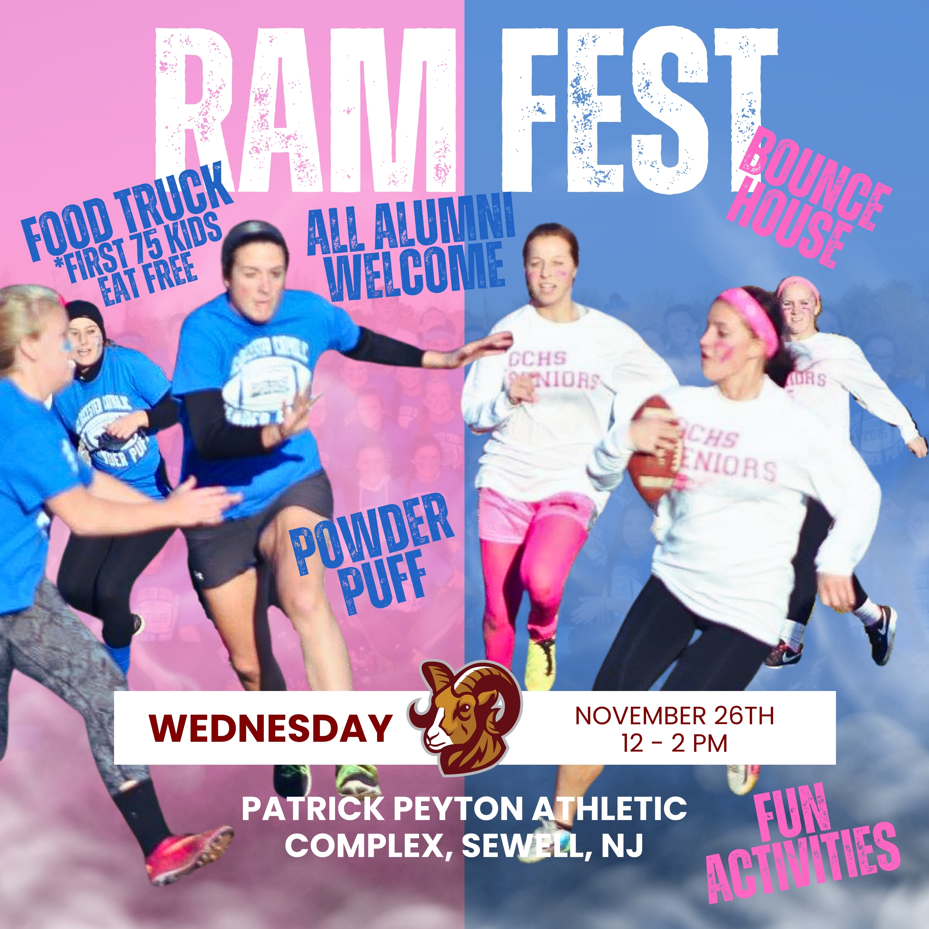 Ram Fest, Wednesday, November 26th, 12:00 PM, Patrick Peyton Athletic Complex, Sewell, NJ.